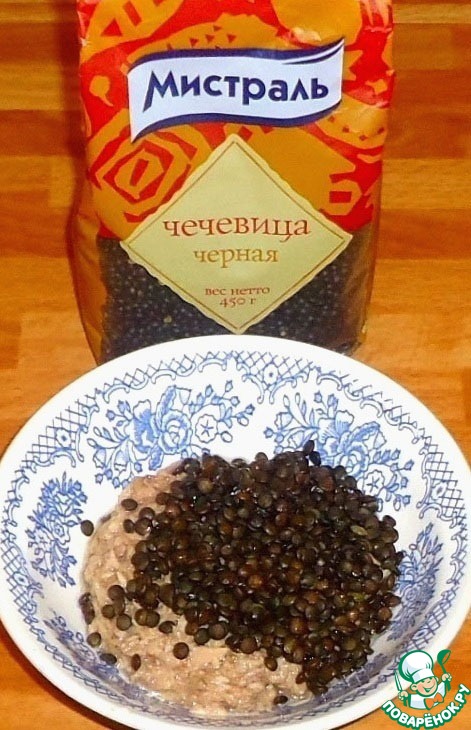 Пока лук маринуется, сварить чечевицу ТМ "Мистраль", как указано на упаковке.