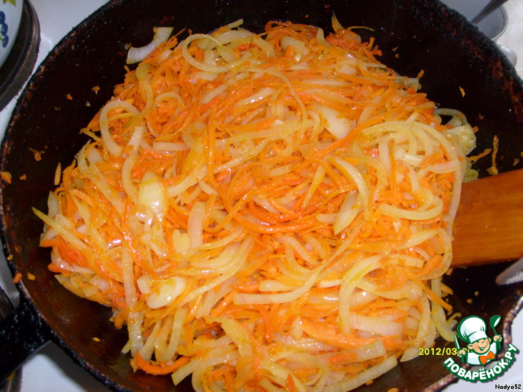 сюда же добавить лук, пассеровать еще минуты 3-4, мешаем.