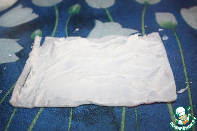 Намазываем сливочным сыром. На каждую палочку уходит чайная ложка сыра с горкой