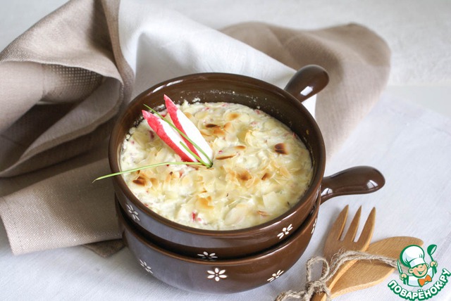 | Несмотря на странные, на первый взгляд, продукты - это действительно очень гармоничное и сбалансированное сочетание. Так получилось, что вся советская кухня - как массовое явление - меня миновала, и никогда не была мне близка. Поэтому я всегда ищу простые и выгодные сочетания продуктов, близкие или характерные в основном для Средиземноморья, и это - одно из них. Если вы устали от традиционных сочетаний (и свежих крабов:) - это отличный вариант! |