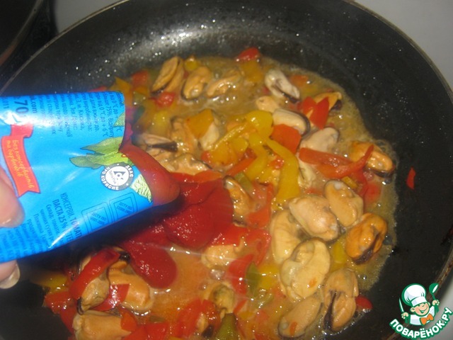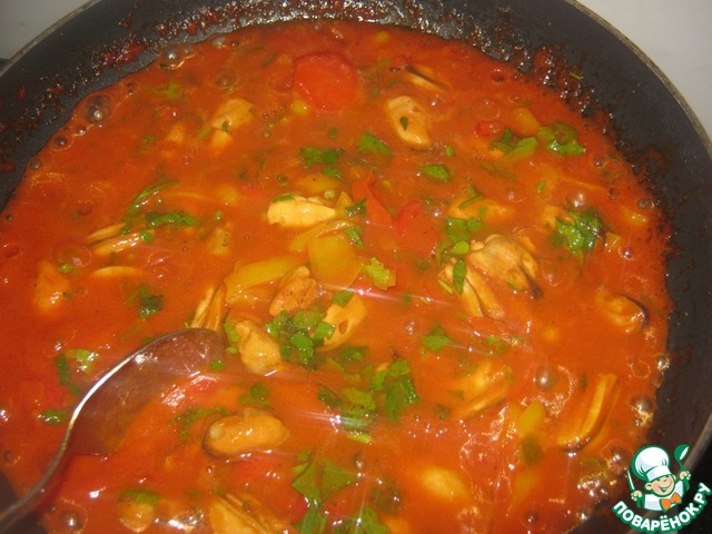 Наша закуска готова!! Очень вкусно! Особенно в сезон помидоров, когда можно сделать сок со своих мясистых помидоров и потушить мидии в нём!