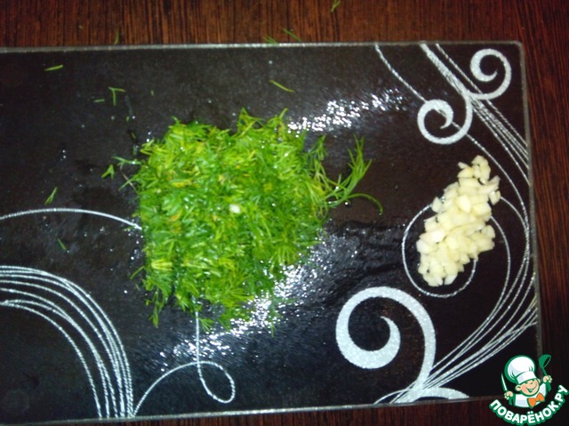 Все смешиваем соль рыбу укроп и чеснок. В холодильник на 5-10 минут