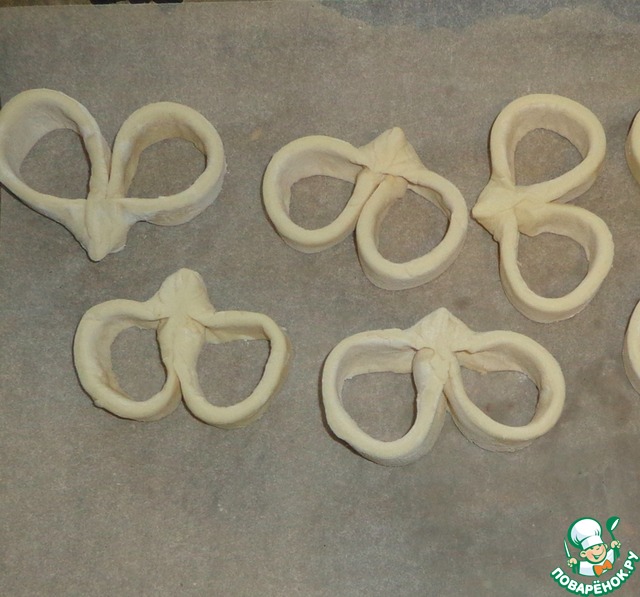 Выкладываем завитки на противень и выпекаем в духовке до готовности. Готовые завитки остудить.