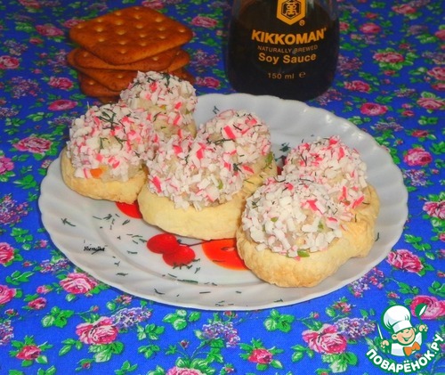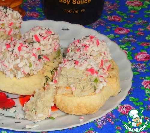 | Закуска из рыбы и риса на хрустящих слоеных завитках. |