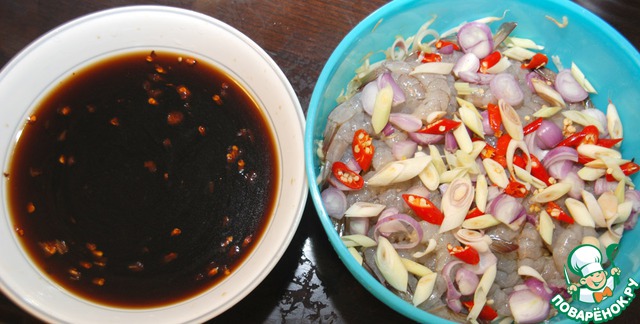 Eсли креветки в панцире, а блюдо хочется быстрее, то их нужно отчистить. Eсли время терпит, то можно в панцире, но мариновать придется 7-8 часов.