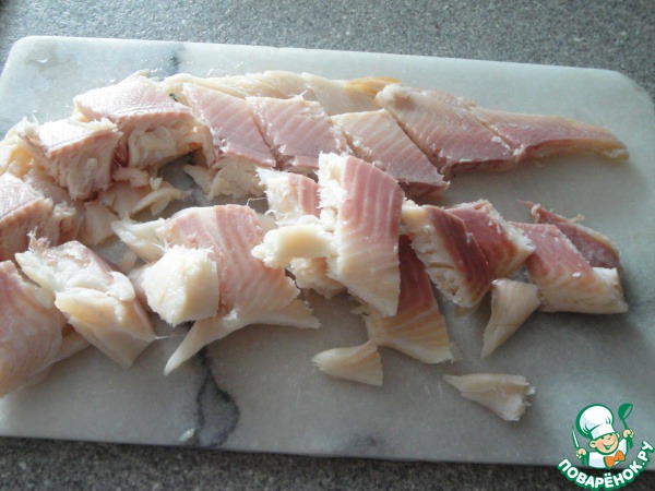 Форель нарезать на кусочки