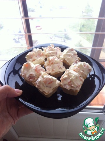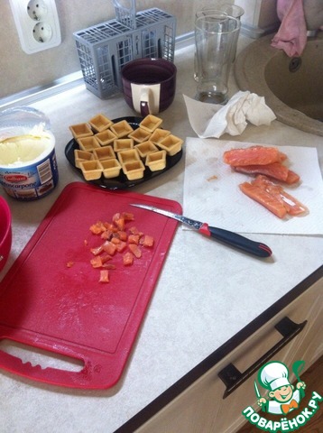 Ну и выложить получившуюся вкусноту по тарталеткам. Я брала уже готовые магазинные. 20 штук тарталеток было в упаковке. Заполнились все плюс осталось немного рыбно-сливочной смеси, чтобы намазать на хлеб на завтрак (готовила по вот этому рецепту http://www.povarenok .ru/recipes/show/201 35/ рекомендую)