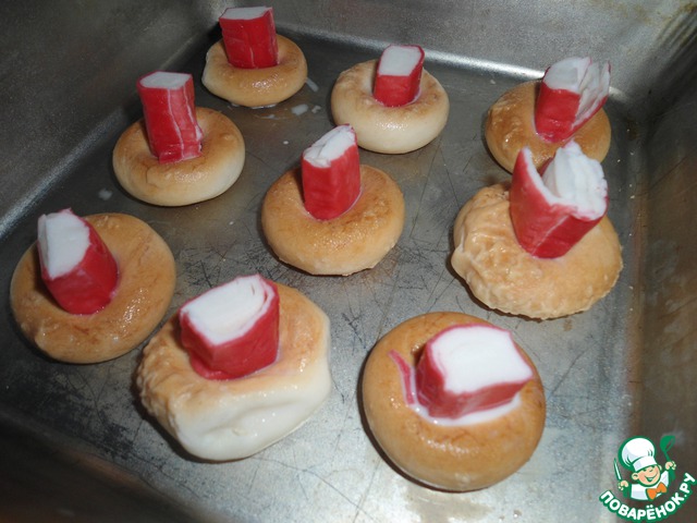 Нежная ароматная закуска готова! Такие крабики в разрезе.