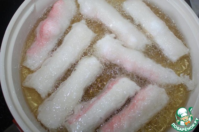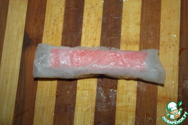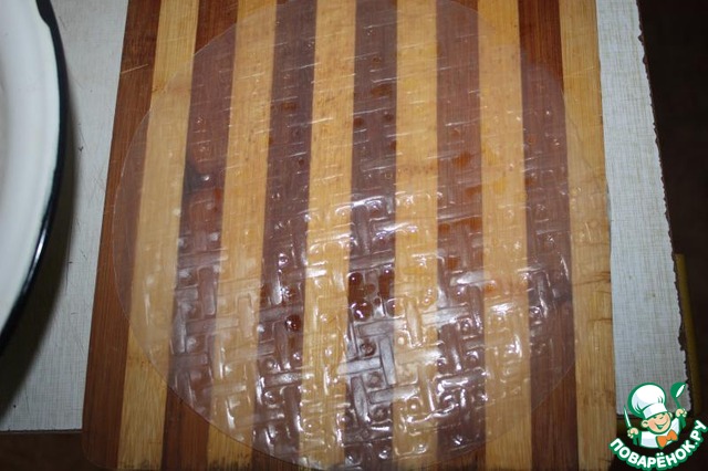 Рисовую бумагу замочить на 20 секунд в теплой воде