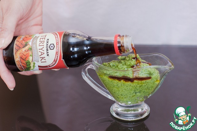 Должна получиться вот такая ароматная достаточно густая масса. Мне всегда не хватает соли в этом соусе, обычно я его досаливаю, но в этот раз добавила соевый соус-маринад Терияки, получилось очень вкусно!