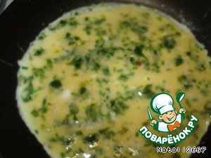 4 яйца и крахмал тщательно взбиваем, чтоб не было комков. Добавить мелко нарезанную зелень. Посолить. И на сковороде пожарить два блинчика.