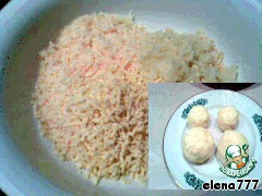 Делаем украшение: натереть на мелкой тёрке желтки двух яиц, сыр, варёный картофель, добавить чуть майонеза для лучшей лепки, перемешать. Сделать 4 шарика - 2 побольше и 2 поменьше.