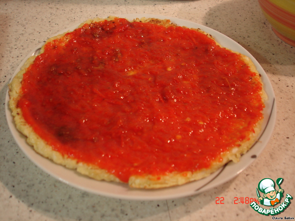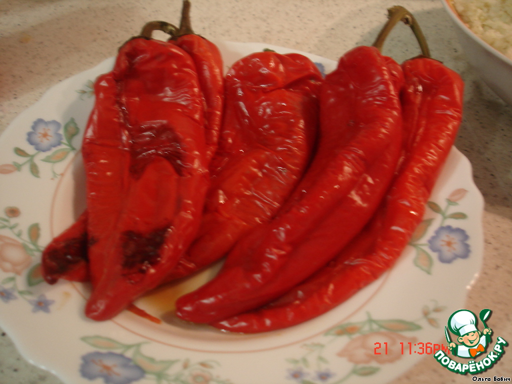 Первый блинчик смазать перемолотым болгарским перчиком.