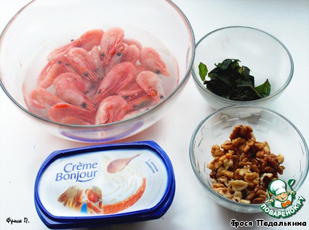 Для начинки: разморозить креветки, залив кипятком. Очистить, сбрызнуть лимонным соком.