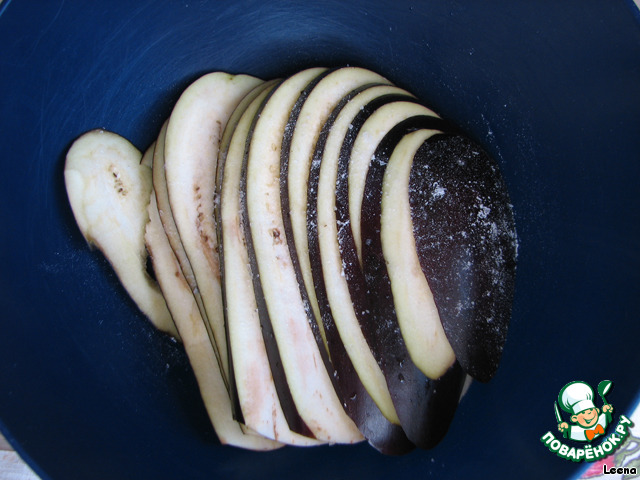 Баклажан режем вдоль и солим.