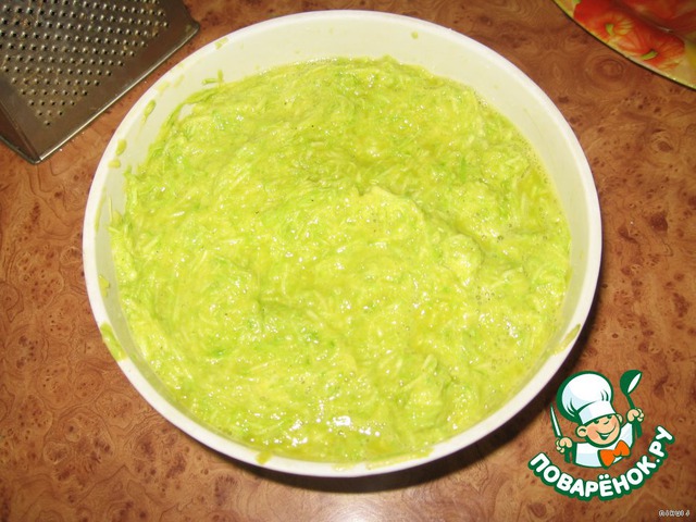 Коржи испекла по своему рецепту "Кабачковые фантазии" http://www.povarenok.ru/recipes/show/7692/ , только не отдельными блинчиками, а на всю сковородку (выходит 4-5 шт).