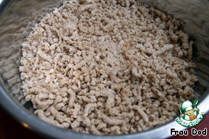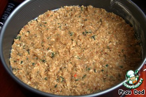 Смазать форму для выпечки, распределить 1/3 хлебной смеси, выпекать 15-20 минут в духовке при 200 градусах.