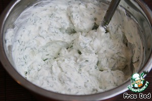 В миске смешать творог, сметану и хрен. Половину укропа порубить (остальное оставить для украшения), смешать с творожной смесью, посолить по вкусу.