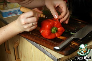 Сладкий перец запечь в духовке в течение 20 минут (должен стать мягким), после чего удалить кожицу, но только с частью мякоти, в противном случае не будет насыщенного красного цвета. Вылепить машину, сверху покрыть шкуркой от перца.