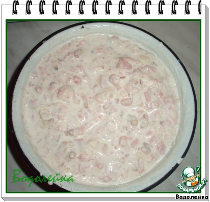 Теперь соединяем вместе сливочный сыр и ветчинно-ананасовую массу. Хорошо перемешиваем.