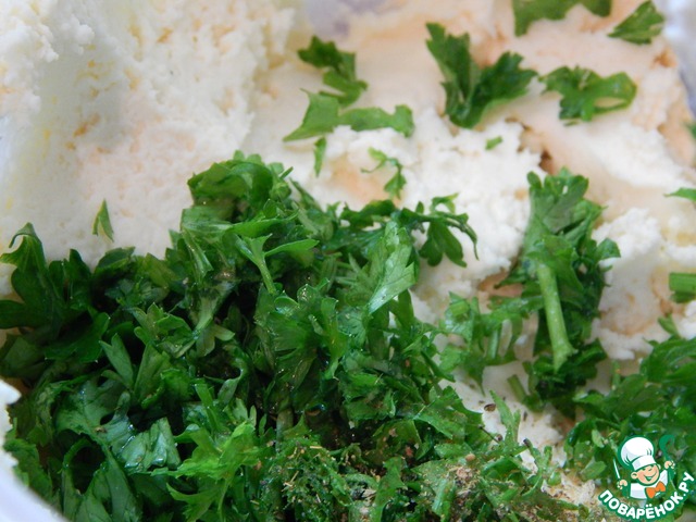 Добавляем зелень, перец и аккуратно перемешиваем.