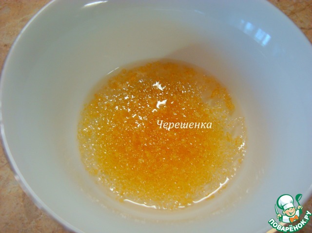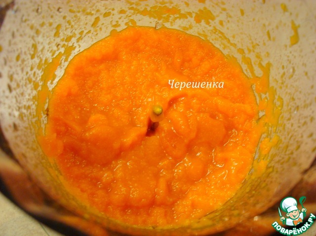 Пока застывает свекольный слой, займемся приготовлением второго слоя, морковного. Желатин так же, как и в первый раз заливаем 2 ст. л. холодной воды, даем набухнуть, а потом растворяем. Морковь пюрируем вместе с соевым соусом, апельсиновым соком, имбирем и цедрой. Солим по вкусу. Добавляем желатин, перемешиваем.