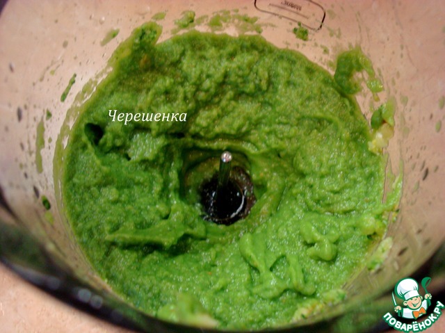 Для третьего слоя брокколи взбить в пюре с соевым соусом, овощным бульоном, мускатным орехом. Посолить по вкусу.