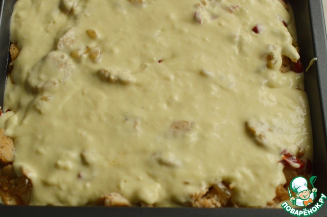 6. Затем выложить оставшееся тесто. Печь в разогретой до 200С духовке примерно 30 минут.
