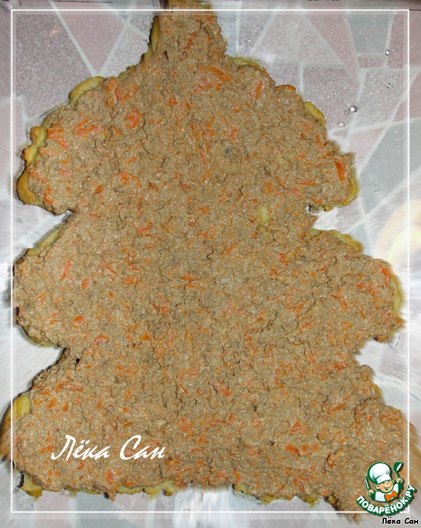 Испекшуюся "елочку" нарезать на два пласта.