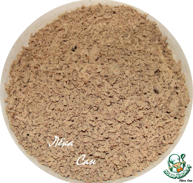 Нa первый корж выложить всю печеночную начинку.