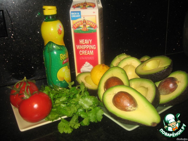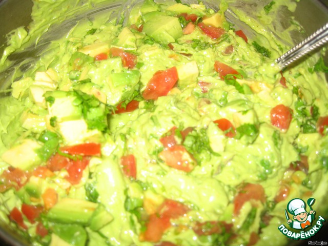Сразу сбрызнуть соком лимона, чтобы не потемнели авокадо.
