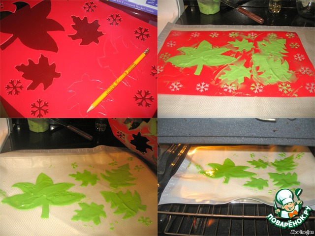 А теперь трафарет: на пластиковом коврике рисуем елочки и вырезаем.