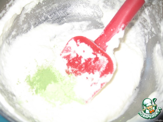 Взбить белки до устойчивых пиков, добавить туда щепотку соли.
