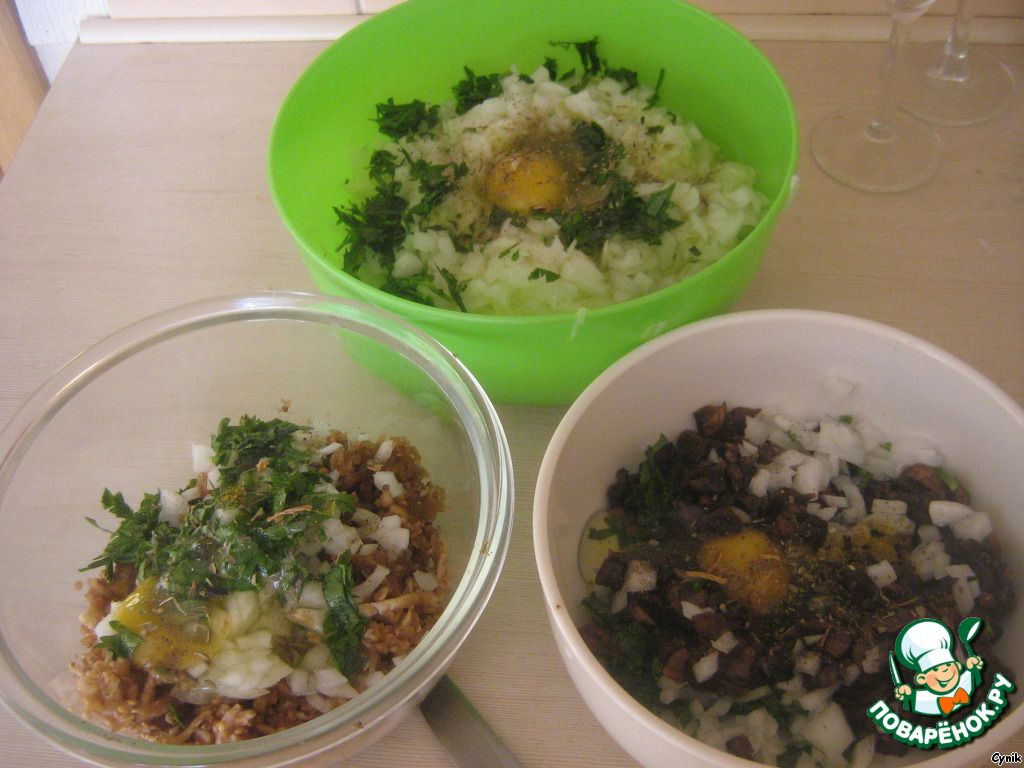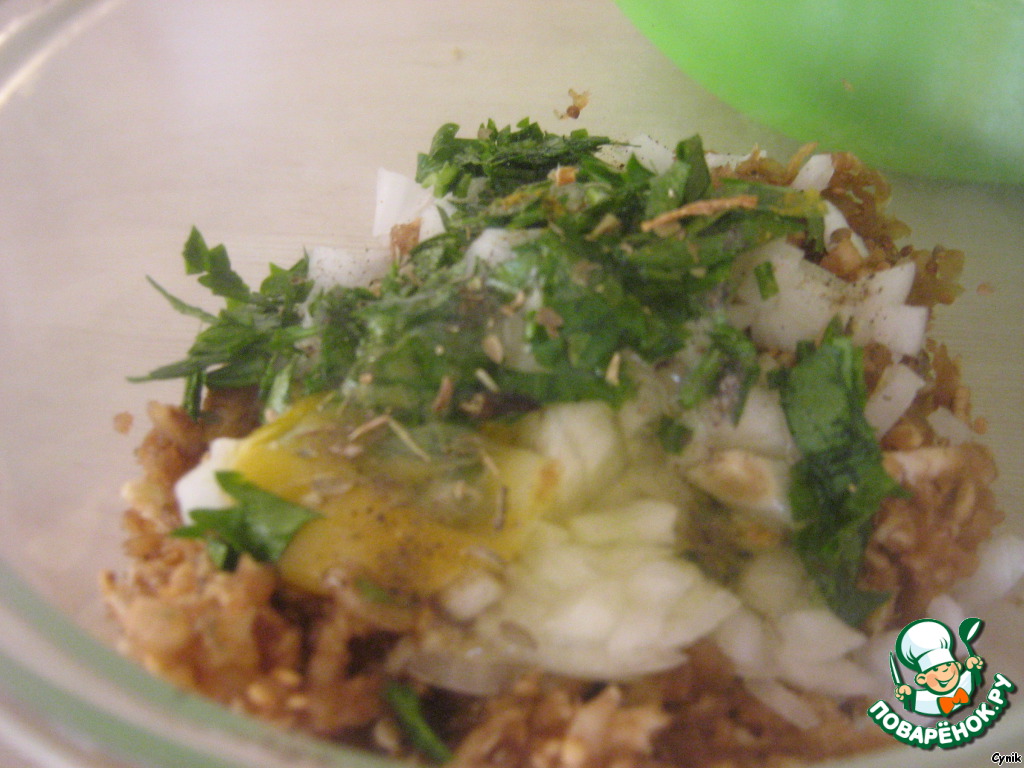 добавляем лук и мелко нарезанную зелень к отдельно тертым и нарезанным овощам