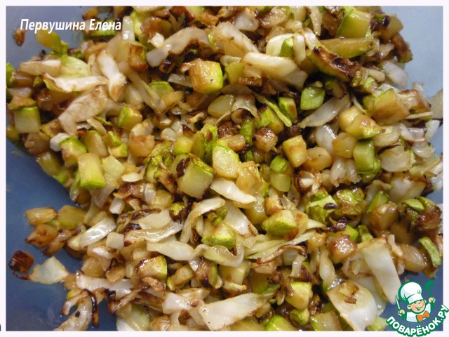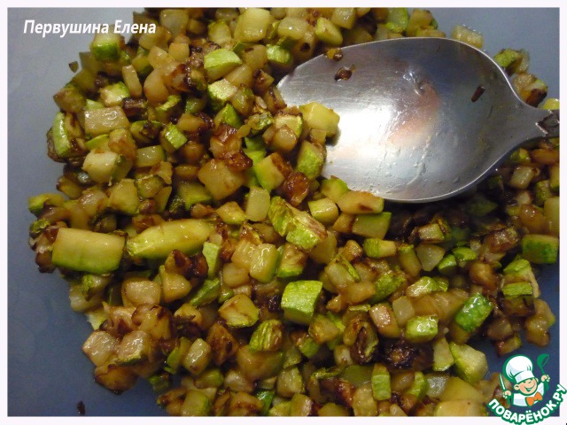 Кабачки порезать мелкими кубиками и обжарить на растительном масле.