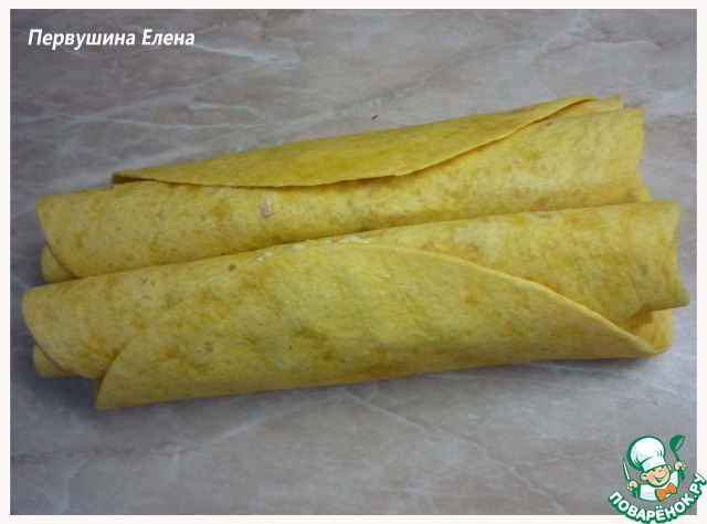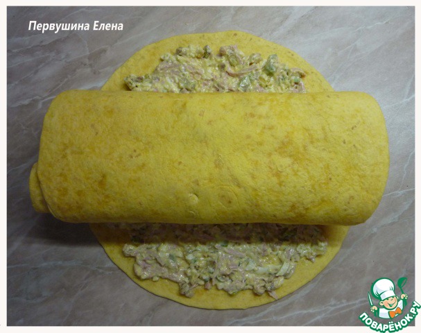Заворачиваем концы к середине, туго натягивая лаваш.