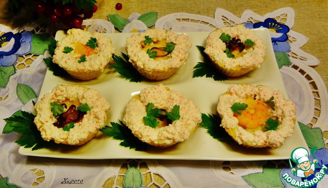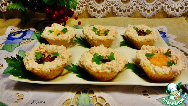 | Предлагаю вашему вниманию рецепт тарталеток с крабовыми палочками и морепродуктами. На праздник очень вкусное блюдо. Очень надеюсь, что вам оно понравится. |
