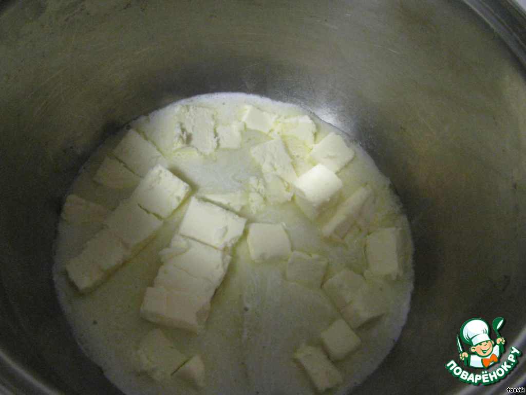 2. Смешать с творогом, добавить муку, смешанную с разрыхлителем и солью. Замесить тесто и положить в холод на 1 час.