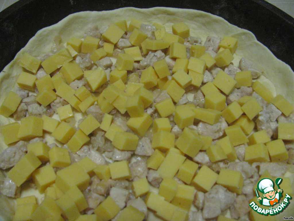 4. Куриное филе нарезать кусочками. У меня филе не до конца разморожено, так его легче нарезать мелкими кубиками.