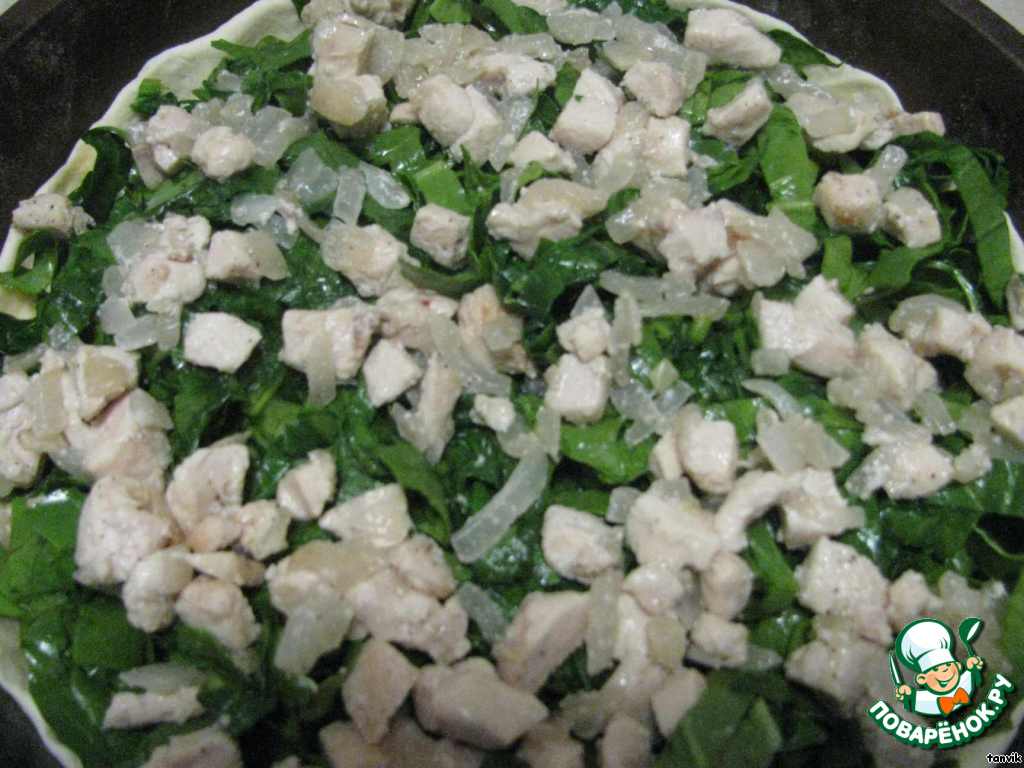 | И опять у меня блюдо со шпинатом. Сейчас сезон шпината, и в нашей семье его очень любят, стараемся использовать везде, где только возможно. Сегодня у меня пирог с курицей, шпинатом и сыром, а тесто у него вкуснейшее - творожное. Более нежного и вкусного пирога я еще не пробовала. Попробуйте и Вы. |
