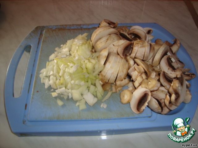 Затем добавить лук и обжарить все вместе до золотистого цвета лука.