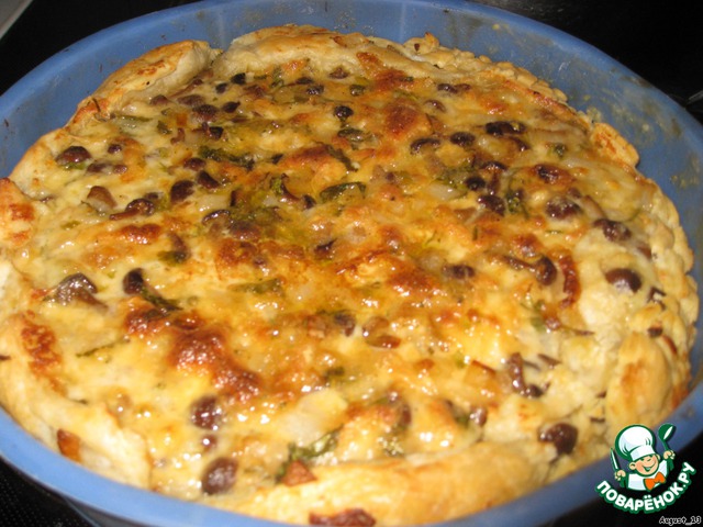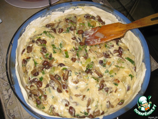 9. По форме равномерно распределить слоеное тесто и поместить начинку.