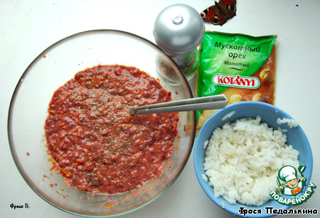 Смешиваем с готовым рисом и морковью. Приправляем мускатным орехом, итальянскими травами и солью по вкусу.