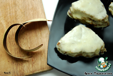 Сверху прикрыть второй оладьей (правописание посмотрела в словаре, оказывается женский род) и кусочками сыра.