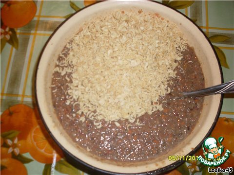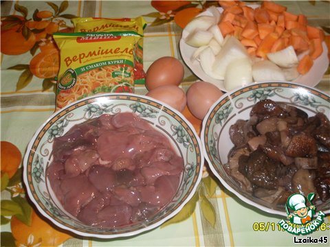 Печень (у меня куриная) измельчить в блендере вместе с луком, морковью и отварными грибами (грибы у меня белые, но подойдут любые). Вермишель быстрого приготовления измельчить и добавить в "фарш".