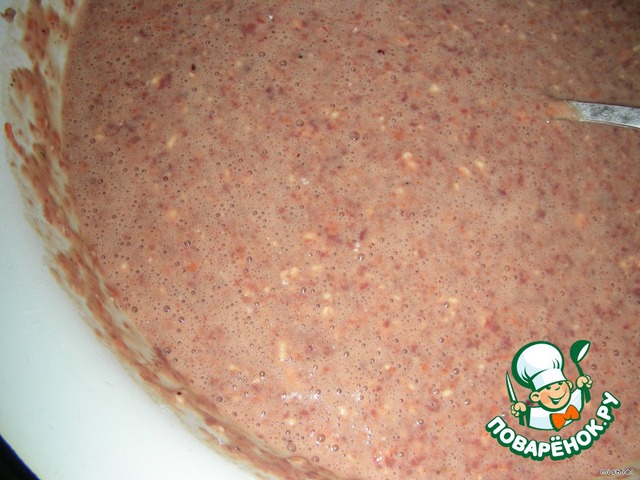 Потом влить молоко (или сливки), немного подсолить, поперчить, добавить муку, перемешать. Масса должна быть как на оладьи.