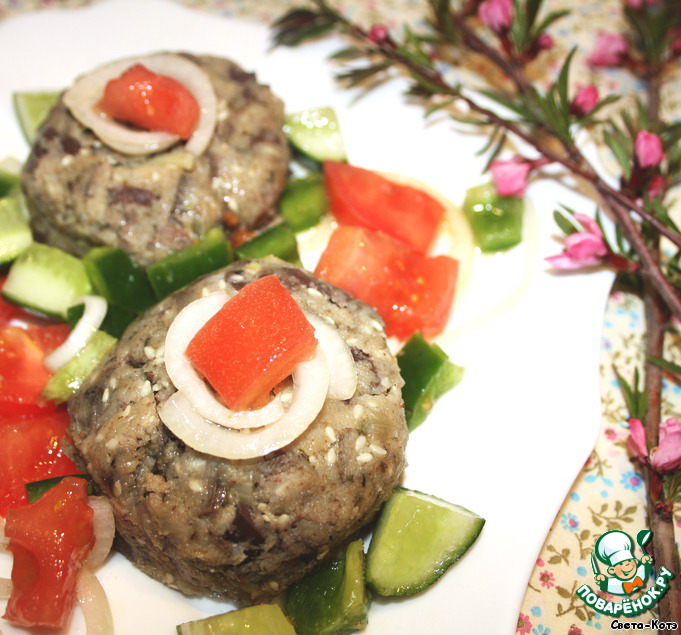 Готовое блюдо автор предлагает нарезать как колбасу. А я сформировала небольшие шарики! Очень вкусно со свежеми овощами или отварным картофеелем!