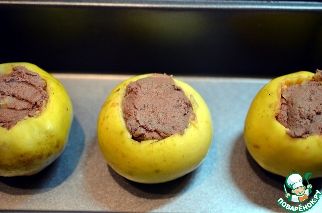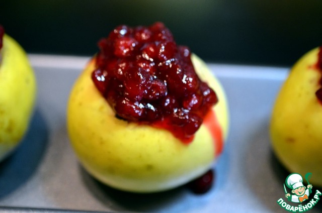 | Сейчас самый сезон яблок, и чего только я из них не делала. Очень понравился нам этот рецепт: запеченные сочные яблоки, фаршированные домашним паштетом из печени, и всё это под пикантным брусничным соусом. Такая закуска моментально улетает со стола! |