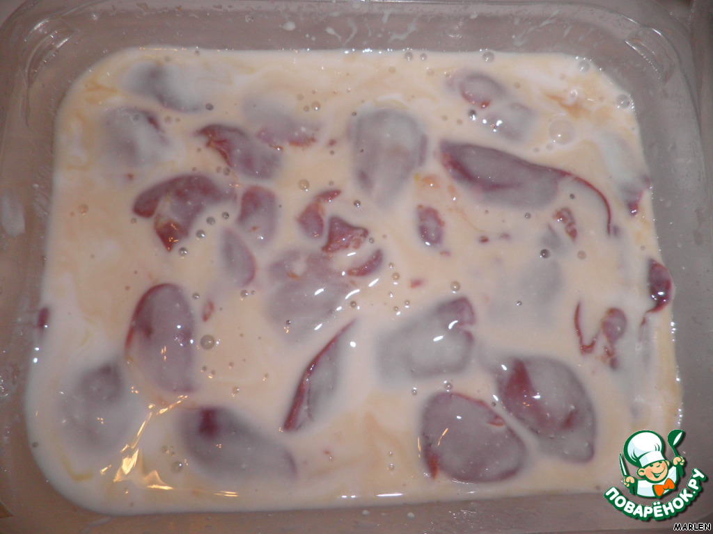 Печень промыть и замариновать в смеси кефира и соевого соуса на 1,5 часа.