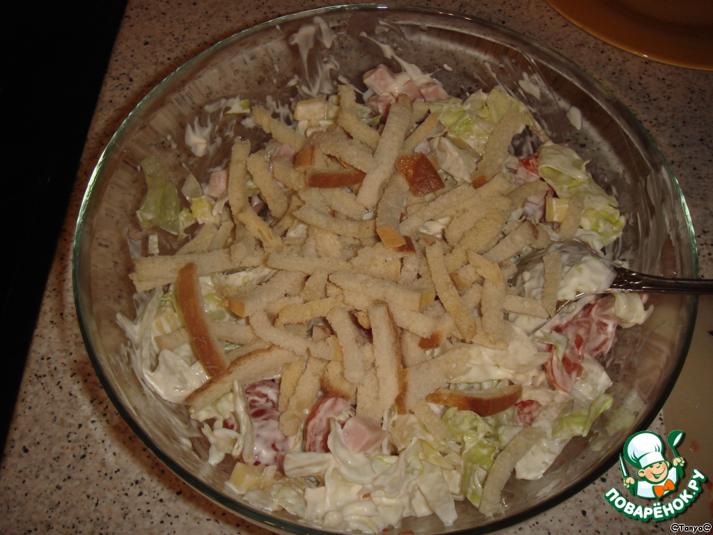 Добавить сухарики и майонез, перемешать.